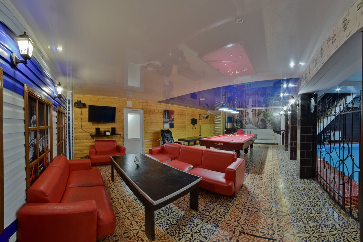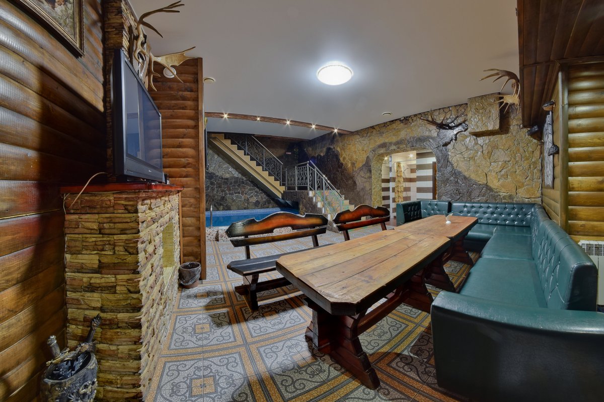 Не хочется в бассейн? Не проблема! Вместо этого можно посидеть в нашей комнате отдыха. Мы постарались создать здесь комфортный, стильный интерьер из максимально натуральных, экологичных материалов, выбрать мебель, которая будет одновременно удобной и эстетичной. Надеемся, что вам понравится! Для создания настроения у нас есть бильярд, кальян и камин. Также у нас работает бар, а если нужно, вы можете прийти и с собственной едой - мы не против! Только не забывайте, что плотная трапеза непосредственно перед посещением парной - это не самая хорошая идея, согласно мнению врачей. А вот после парной - совсем другое дело!